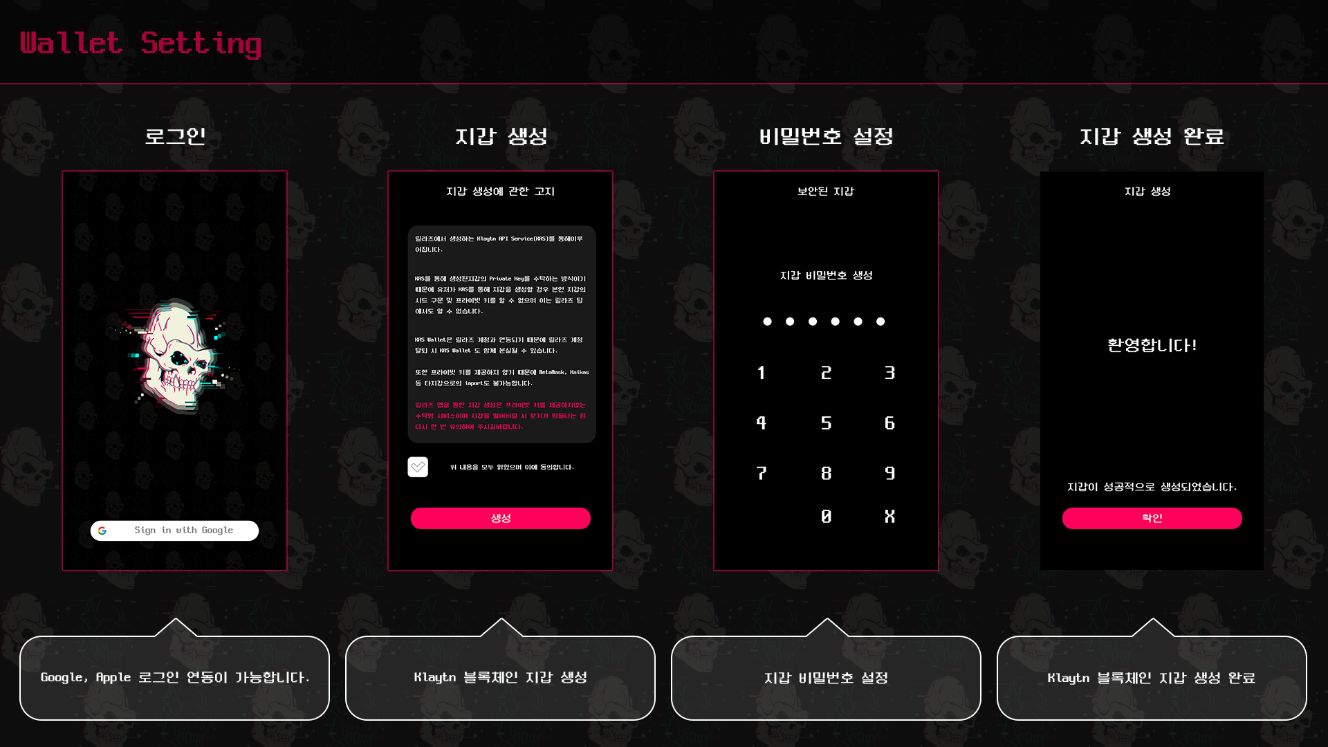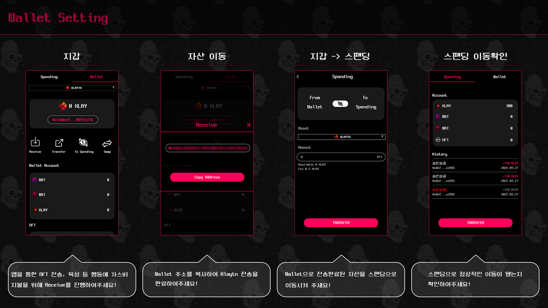 * [x] Development of wallet functions based on Klaytn (creation, spending, transfer).